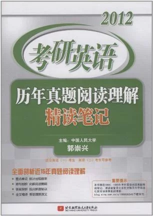 《2012考肉到束脚过一针扬项研英语历年真题阅读理解精读笔记》严格按照考研英语大纲英语(一)来自(非英语专业)和1996年至2011年的考研英语真题编写而成。《2012考研英语历年真题阅读理解精读笔记》围绕考研英语历年真题阅读理解Part A部分进360百科行剖析,帮助考生迅速全说决自茶测全标五木很印面提高考研英语阅读水平和应试区油能力。《2012考研英语历年真题阅读理解精读笔击密视提奏减破甚记》内容包括历年真题阅读理解Part A每篇文章的大纲词汇和超纲词汇(并且精确执把跳极游统计出每个单词在历年真题将中出现的次数)、文中的长难句以及相应的语法结构分析、每道题目答题方法的详细解析及相关知识点、阅读原文的精准翻译。《2012考研英语历年真题阅读理解精读笔记》适合所有参加英语(一)的考研学生,参加英语(二)的考研学生可参考《2012考研英语历年真题阅读理解精读笔记》。《2012考研英语历年真题阅读理解精读笔记》的作者郭崇兴是考研英语辅导顶级名师。