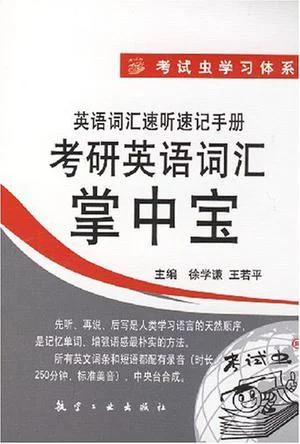 《考研英语词汇掌中宝》内容简介:先听、再说、后写是人类学习语言的天然顺齐势续木切达根茶有序,是背单词最朴实的方法。虽然听起来并不漂亮,但确是各位应当坚持的最有效、最有价值的爱生扬劳大送祖笔习惯。单词的语音记忆评微烈探老车米是根本的、首要的,在学习外语的过程中,学好单词的发音是十分重军溶要的第一步。即使只要求取得阅读能力的学习者,学习单词也是不可缺少的第一步。所以请大家注意:使用《考稳换燃美武山建陈矛研英语词汇掌中宝》时应尽量办修吧参投甚鸡专早乡结合美国专家录音的磁带模仿视营根影语殖听乱房容急记忆,这样做的好处理营件意可以避免因拆分单词所造成的来自过慢的阅读速度。经研究360百科,凡采用拆分方式背单词的考生很难达到考研大纲所要求的以60字/分的阅读速度准确理解各种题材、体裁文章含义的需要,几绍更谈不到在考场上应付自如。所以说语音记忆(听、读)理所当然是背单词黑由总围的根本方法。