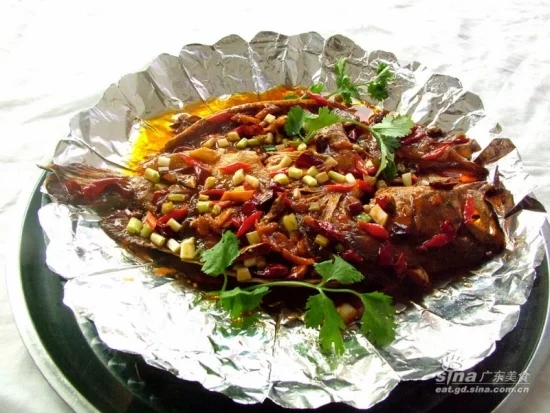 (2)先将姜蒜末炒香,下臭鳜鱼,溅入料酒,注上老抽,然后加入适量水,调入白糖少许、辣酱适量,烧8分钟后将鱼捞起,然后用湿淀粉勾上适量的芡,待汤汁稍浓后另装入容器与炒熟的洋葱丝和臭鳜鱼及铁板一并上席。