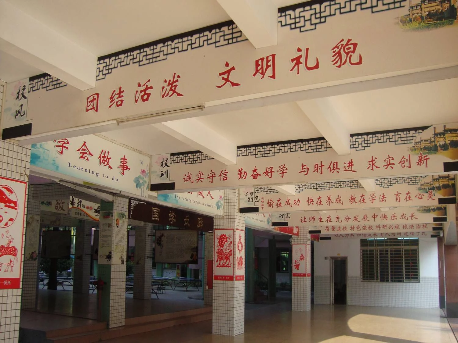 来自学校现正不断加大校园环境建设,教学功能室及设施设备建设,提高教学质量和教师上课优秀率,争取在2009年内评东莞市三星级学校,在2010年内评东莞市一级学校。