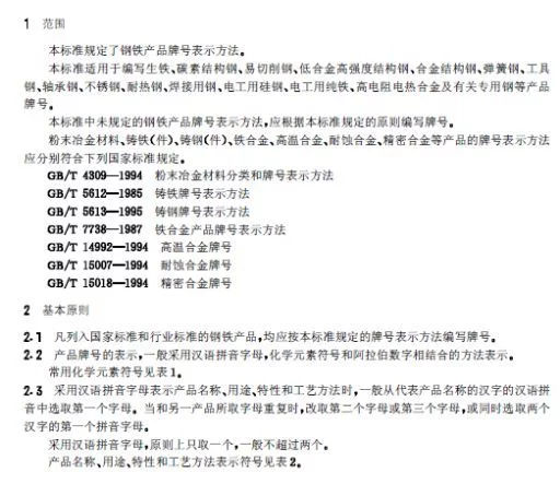 钢铁产品牌号的表示,一般采用汉语拼音字母,化学元素符号和来自阿拉伯数字相结合的方法来表示。