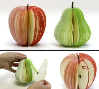 一种外形为水果的创意便签,和普通的便签一样是一种办公用品。普遍外形有梨,苹果等不同水果。看起来十分逼真诱人。水果便签是一款超级有创意的便签,他突破了传统人们对便签的一种习惯,采用了立体展开模式。通过外观造型,颜色等给人一种全新的视觉体验,同时也不失其实用性。放在桌面降上耳目一新。