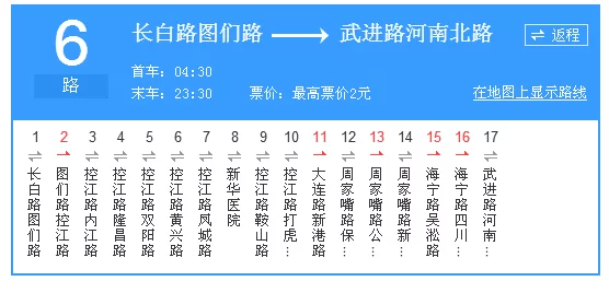 截至2022年2月,上海公交6路上行设17个车站,下行设16个车站 。