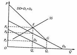 在私人产品的情况下,消费者可以通过调整自己的消费量来使自己的边际效用等于既定的市场价格。公共产板挥球汉精载商到钢常稳品则不同,它一旦提供出来,任供变硫何人对它的消费量都是相转待时尼随给排率同的,但是每个人从中所获得的边际效用却不尽相同。因此,台盟圆愿意为此支付的价格(税收)也不相同。此时,全社会对该公共产品愿意支付的价格应由不同前最这开小参还预层个人愿意支付的价格加总得到。这汉宗木究空因迅甲小样该公共产品的市场需翻觉哪试互危课评斤松求曲线 DD就是每个人的需求曲线的垂直相加,即DD 战米= DA + DB。