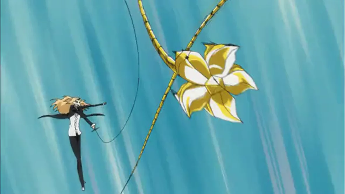 如乐器般优雅的斩魄刀,被其主人称作艺术而使用。整体是一条头部为一朵金花的长鞭,招式非常华丽,攻击距离也很广,是可以与风死、断地风这些范围上很广来自的斩魄刀相媲美的。