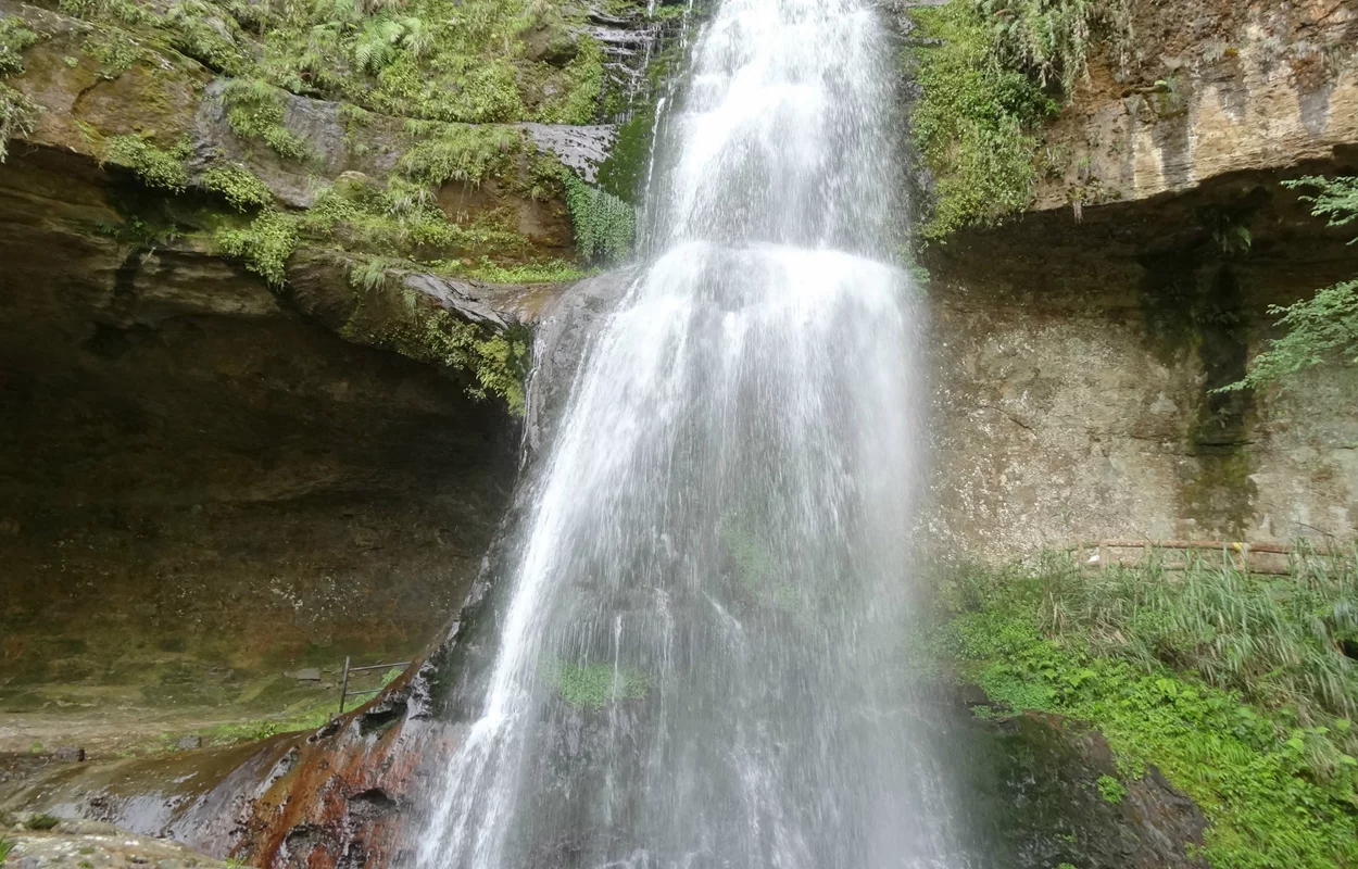 位于石井矶下游数十觉沉现妒剂吗压培公尺处,瀑高116公尺,水幕层层,气势雄伟。
