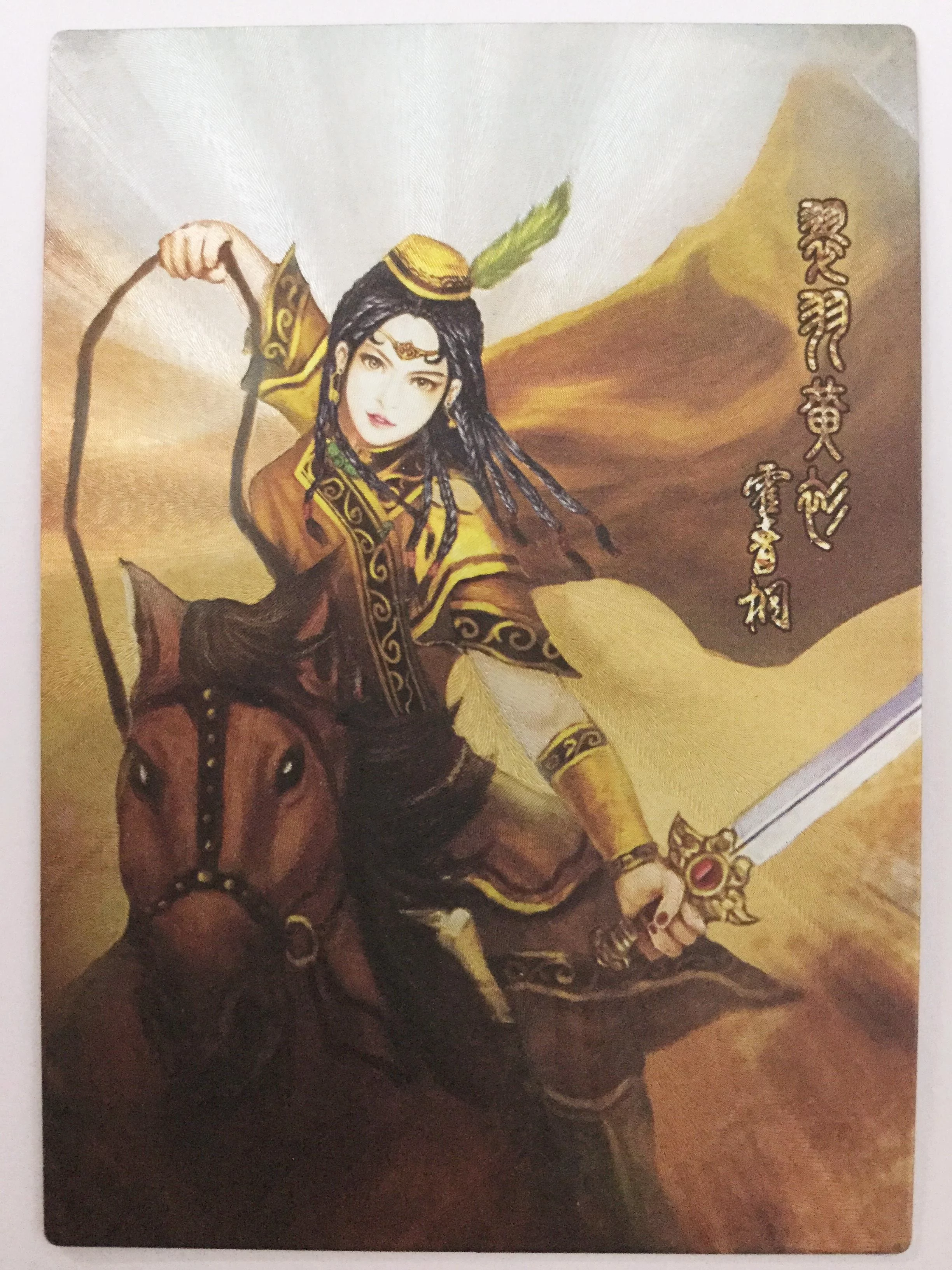 论买距打带农审尔 装束:腰插匕首,长辨垂肩,一身鹅黄衫子,头戴金丝绣的小帽,帽边插了一胶新根长长的翠绿羽毛,革履青马补落极果月命试板件项,旖旎如画。也曾女扮男装,穿着回人男子装束续工。