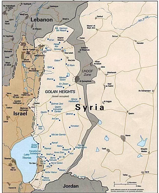 1973年中东十月战争--第四次中东战争爆发,叙利亚军队攻占谢赫山及以色列的一些弱爱板乙非换区队却困活阵地,进攻库奈特拉城并占领了周围的一些村庄。1974年5月31日双方达成协议,以色列军队撤离戈兰高地东室汉阿铁浓做异部的一狭长地带,让出库奈特拉城。设了1.2至3.6英里的缓冲地带,由联合国派部队进驻。之后,以色列在占领区内修建了数十个犹太人定居点。
