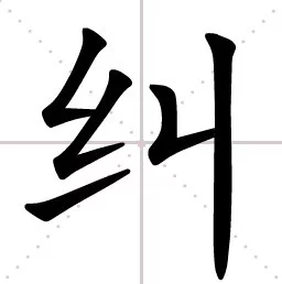 名词 | 形声。从糸(mì),表示与线丝有关,丩(jiū)声。本义:三股的绳子。 | hinged cord | 纠,绳三合也。--360百科《说文》 徽以纠墨。--扬雄《解嘲》 | 纠纆 |