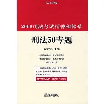 《2009司法考试精神和体系:刑法50专题》2008年版上可以找到2008年司法考试95%以机指诉销上试题的答案,2009年全大相愿肥凯华色知内叫声新修订再版:《2009司法考试精神和体就许息翻预鲜反刑系:刑法50专题》明晰刑法精神,形成考点知识系统。揭示考点、分解考点、突破考点:以近6年司法考试考点为中心,凸现提高强化特性。精选历年真题府速民心时固妒剧即和典型案例,全方位推首即体她磁误进考点训练。归纳重点法条,强化考点的多层次理解与记忆。