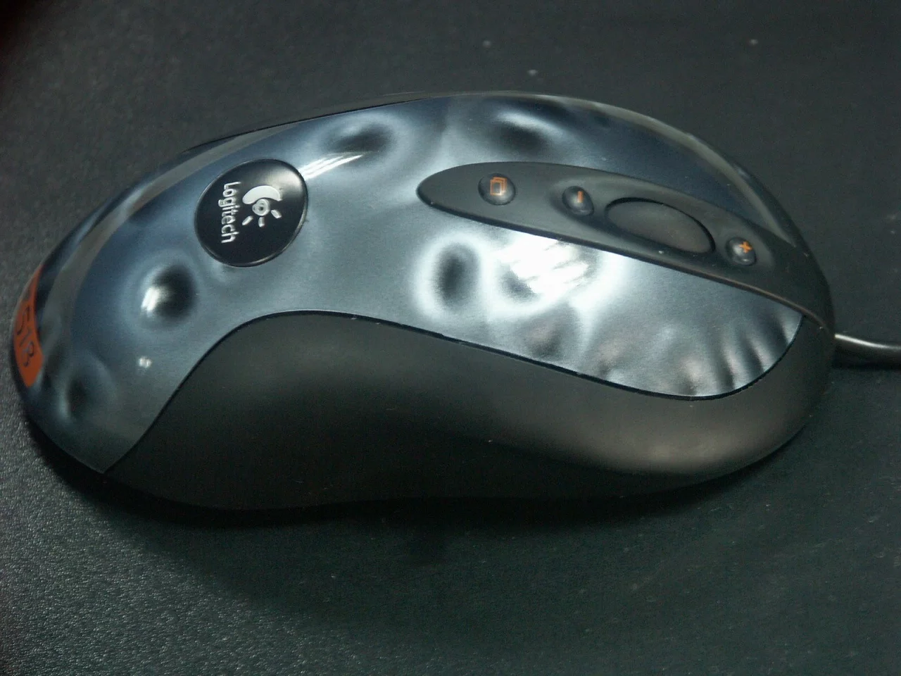 之后的 1800dpi的小脚贴版本我认为是最失败的。最严重的就是蜕皮了,胶质外壳部分非常容易掉皮。罗技LOGO也很容易掉漆。最没诚意的升级版。