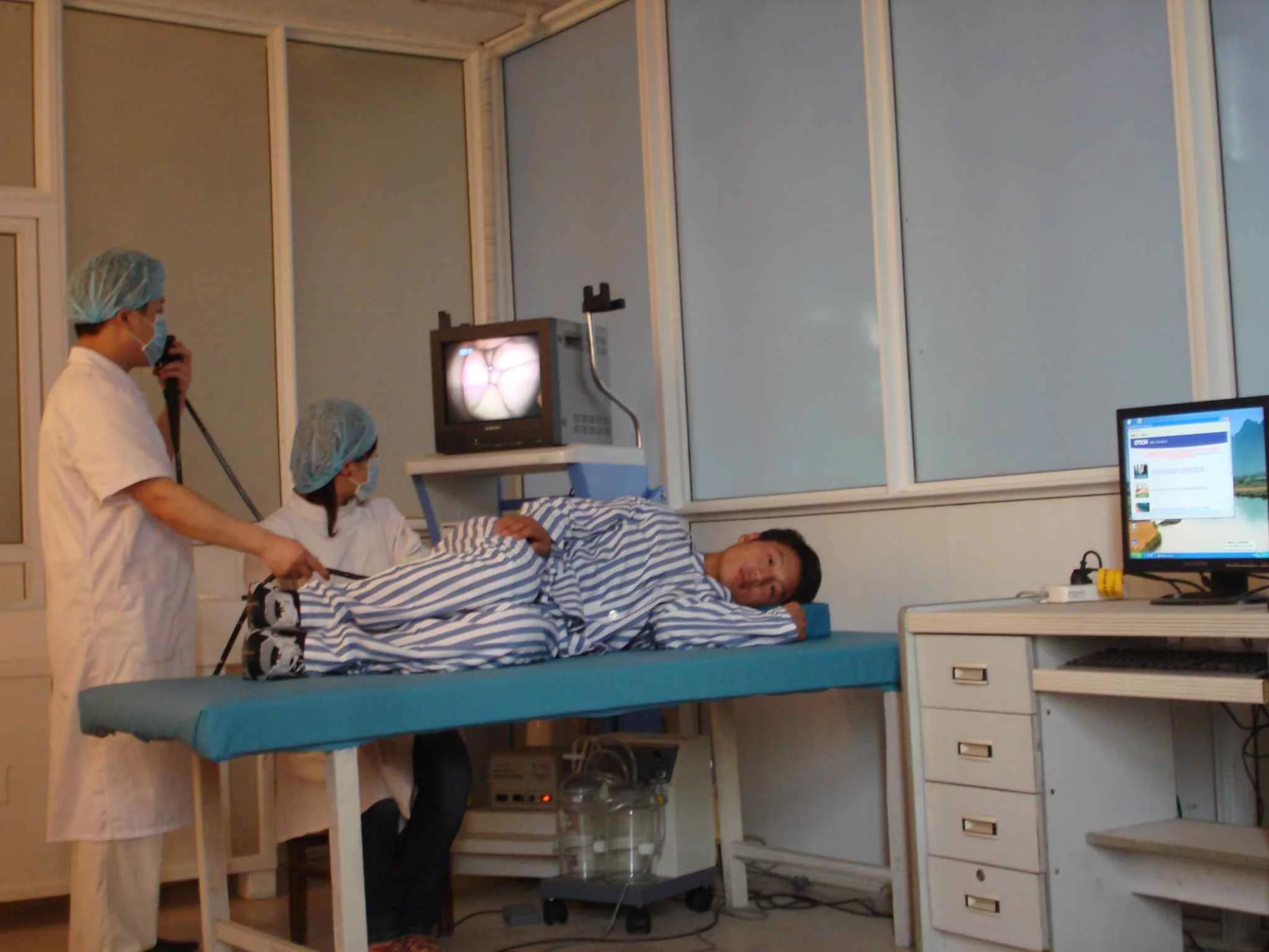 肠镜来自是一个管子从肛门插入,从直肠到盲肠,长度约有一百多公分,它的构造功能与胃镜基本相似。肠镜检查要比胃镜检查麻烦些,也比胃镜痛苦。做一次完整的肠镜检查平均需要10分钟,肠子比较直的人得很容易做,5、6分钟就可完成。肠子转来转去,甚至打结的人,医生可能要套花30分钟,才能做完一次检查。