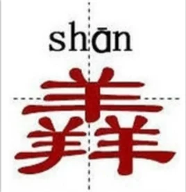 羴读音"shān",古代是"膻"的异体字语。所谓"膻"就是羊肉的味道,也泛指羊的意思,也是鼻烟品目之一。