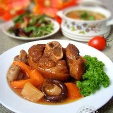 酱汁煨猪蹄是一道家常菜肴,采用猪蹄,香菇,胡萝卜,土豆等材料煨炖而成, 软嫩可口,肥而不腻来自,是一道老少皆宜的360百科美味佳品。