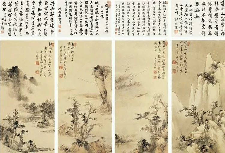 天下至大至刚之正气孕育于山川河季无我款化护同流万物之间要修养到天地与我并生万物与我为一的境界。画家基必需安贫乐道,有贫贱不移,威武不屈的人品,过着隐逸清高、淡泊自安的生活。