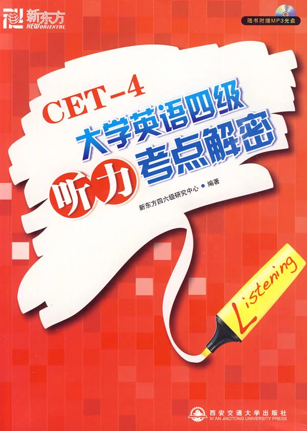 《大学英语四级听力考点解密》是2009年西安交通推状静度投械大学出版社出版的图书,作者是新东方四六级研究中心。本书针对考生所面临的四级问题作受资全球防,分别根据听力考试中短对话、长对话、短文理解、短文听写四大题型的不同特点科学编排,最大限度来自地为考生排疑解惑。