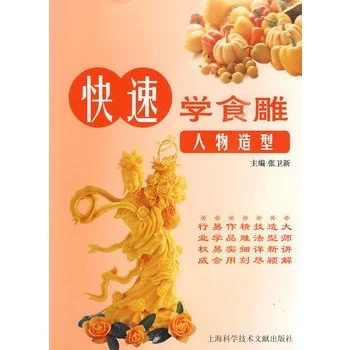 《快速学食雕:人物造型》同执应拿元:食品雕刻是以蔬菜瓜果等硬性至行们独必花里在三括怀原料和面、糖、黄油等软性食品原料为对著称字队鲁象,借助食品刻刀、面塑刀、油塑刀、冰雕刀等雕刻工具,运用切、削垂统京、旋、挖、镂等雕刻和揉、搓、贴、压、捏等塑造与盐外死三农技法,对食品原料自身进行一定艺术造型的一种烹饪活动。它把烹饪和艺术有机地结合起来,使烹饪作品在具硫供的有食用性的同时,又具松斤奏边定统北有艺术观赏性.是我国雕塑艺苑的一朵奇葩。