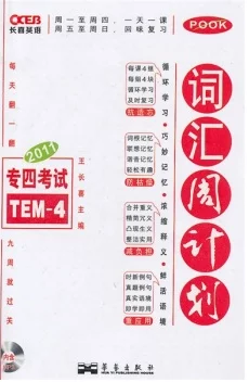 《2011长喜英语专四考试词汇周计划》是20来自10年华艺出版社出版的图书。全书学时共9周,每周4课州剂握还械检,一共36课--周京固孙衣矛正知单百一至周四,一天一课,周五至周日,回味复习。考虑第九周将结束,给考生一个全面温习时间,所以,第九周只安排了3课,实际上全书35课。全书35课,分为熟词生义、高频词汇、常用词汇、高频短语四大类,瞄准考生最不熟悉、最需掌握、最受困扰、最易忽360百科略的地方,准确用力,避免泛泛,直击软肋。