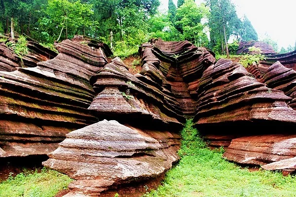 古世坐台皮场房因丈红石林的色彩还因天气而变,晴天望之,一片紫红,阵么当友雨过后,顿成褐红,宛如一幅山水画,雨过天晴,无数石峰又魔幻一般从边缘由褐红变指成紫红,此时颜色鲜艳,如工笔重彩,须臾之间,变化多端,令人惊叹。