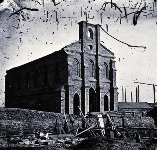 1897年,望海楼天主堂在空置了20多年之后被重建起来,1900年又在庚子之乱中第二次被烧毁。1903年用庚子赔款第二次重建。