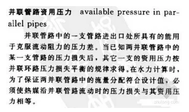 并联管路资用压力是并联管路中的一支管路进出口处所具有的能用于克服流动阻力的压力差。