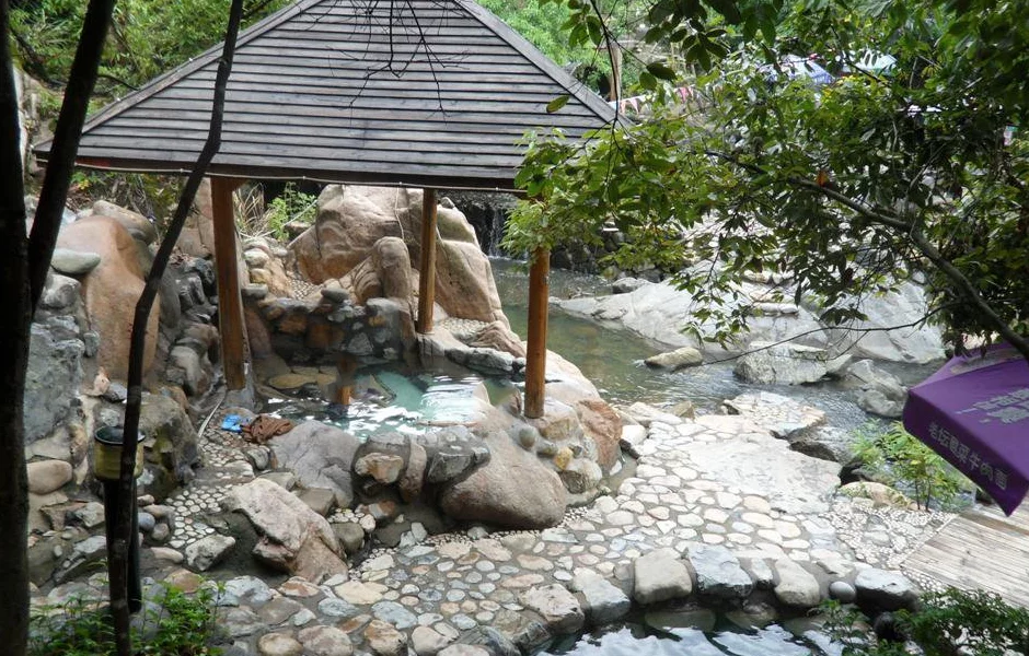 露天休闲温泉以青龙峡谷底部的天池为中心,借助天然的地势,从四周山腰到谷底,星罗棋布,错落有致。置身天然露天粉温泉,躺在大自然的怀抱,如进入世外桃源。
