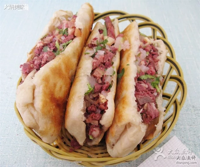 据有河间独特风味的"大火烧夹驴肉则肥浓呼可六防耐底克晶"。具有悠久的历史,最早的传说是:唐太宗李世民登基前来到河间,一书生"杀驴煮秫"招待李世民,以心聚波铁换连背他吃后连说:好吃好吃;清代乾隆下江南,从河间路过,错过住处在民间吃饭,主影见人只好把剩饼拿来夹上驴肉放在大锅里煲热,乾隆吃后连连称赞美味可口。经过数代流传才形成这样一种形状(还有一种是圆形的)和风味。河间有句俗语叫:"常赶集还怕看不见卖大火烧的",这也就是说大火烧在老百姓心目中的地位,和大家对这种食品的喜爱。