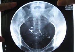 4)收缩或输卵管痉挛,可针刺合谷、内关穴或肌注阿托品0.5毫克,24小时再在同样部位拍摄第三张片,观察腹腔内有无游离的碘化油。见边界清楚的碘团,则考虑输卵管粘连,如双侧输卵管不通,则盆腔无弥散典油影像,如有少量典油影像并有输卵管残留影,则考虑输卵管通而不畅。