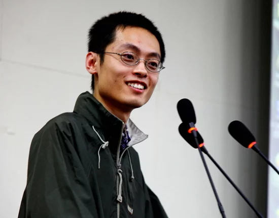 北大"站神"檀越现身天津科技大学演讲。