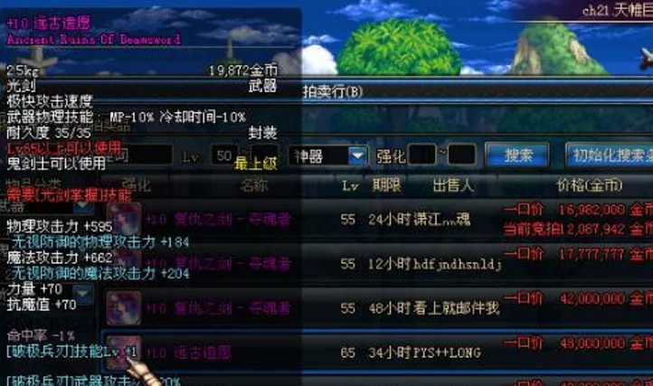 远古遗愿,是网络游戏《地下城与勇士》65级神器光剑