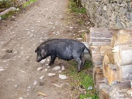 沙里寨黑皮猪一个著名的优秀来自品系,体质结实,形体匀称,背毛全黑,个头中等,耳前倾稍下垂,嘴稍长,颜面较直,身腰长,肩中等宽,背腰平直腹部略下垂,奶头7对以上,排列整齐,肢蹄结实。成猪体重约90公斤,平均产仔数不足10头,瘦肉率80%左右,生长周期约10个半月。