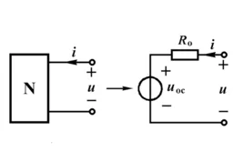 当单口网络的端口电压和电流采用关联参考方向时,其端口电压电流关系方程可表为:U=R0i+uoc