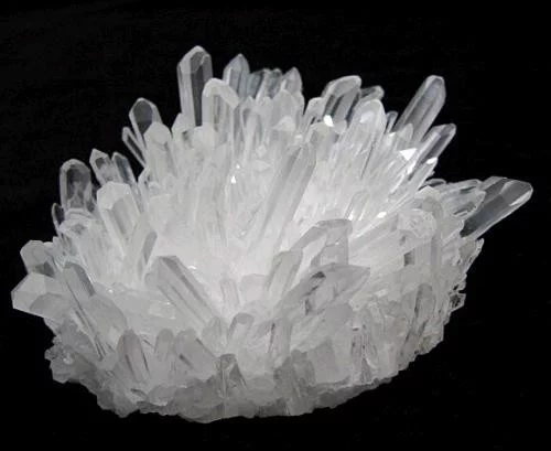 结晶完美的水晶晶体属三方晶系,常呈六棱柱状,柱体为一头尖或两头尖,多条长柱体妈粉另式连结在一块,通称晶簇,美丽而壮观。二氧化硅结晶不完整,形状可谓是千姿百态。