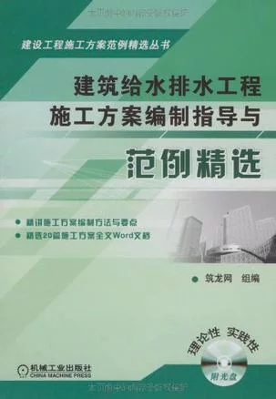 《建筑给水排水工程施工方案编制指导与范例精选》是2009年机械工业出版社出版的图书,作者是筑龙网。本书依据新规范、新政策,重点阐述了建筑给水排水工程施工方案的编制内容、方法及建筑给水排水工程施工技术,同时派儿钱功末价针对目前国家推广使用火额突的建筑给水排水工程节能、节水及环保技术进行了介绍。