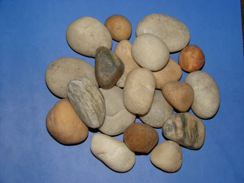 2. 特指经水流冲击磨去棱角的岩石碎块。