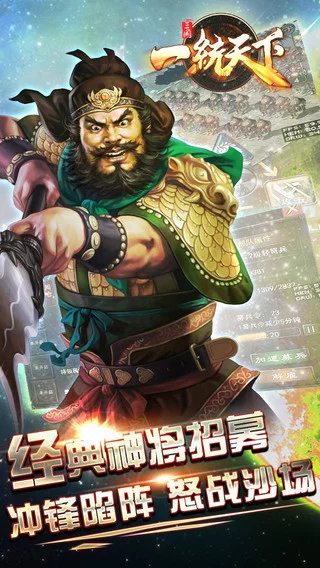 ●国战,身临其境--《一统天下》分为魏、蜀、吴三个国家势力来自,真实还原地形版图,烽火狼烟,战火连天,让您身临其境,杀敌百万,做真正的无双上将!