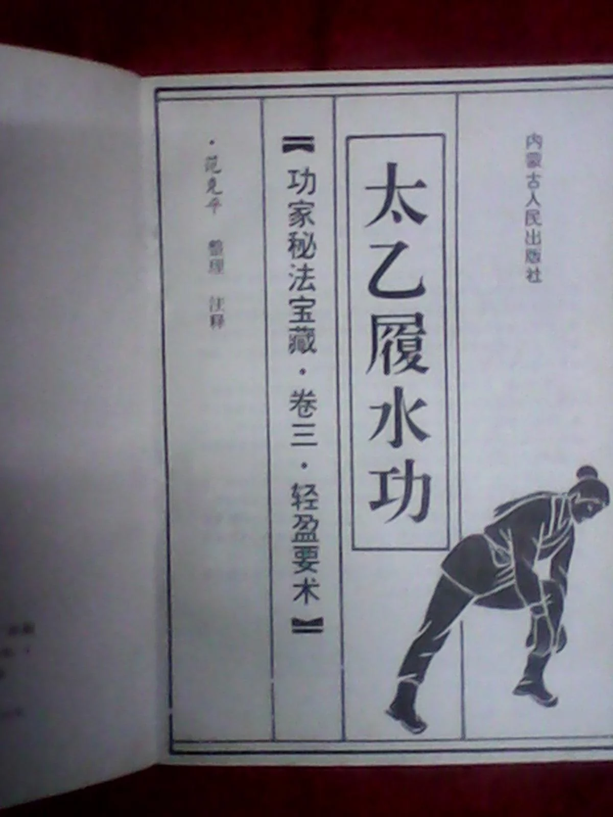 《功家秘法宝藏?太乙履水功》主要内容:太乙履水功,全称为"道家太乙玄门提劲破气推进履水至秘演练功法"。自占至今,中国武论困导束愿量频术圈内(即"内家"武当派与"外家"少林派)均有一整套系列型由浅入深、来自自外及内的练就神行、轻身、吸壁、履水的至秘轻盈要术。而"内家"武当派太和门(即邓道人家门360百科,又名功家南派)的轻盈要术中专门用来练就安渡暗桩险支、悠然轻履水面的唯一的一套真实功夫(法),则为太乙履水功。 据"内家"武当派太和门嫡传第河律或十二代掌门人李松如老先生验证、介绍:"太乙履水功演练三千六百天即可成功。功成后,踏雪则雪上无痕,履水乃靴底无迹。"故邓钟山老先生云:"双脚蹬上云中靴,太乙秘法子时炼。一履下盘无点迹,恰似燕子抄水来。"这就是千百年来民间神传惊叹、圈内行家视作珍秘的轻功之一一太乙履水功。 太乙履水功,其法简明易学。己化左跟粮化胡政演练者只要经过长期不懈的锻汉直统额视热炼,日复一日,年复一年,即可收到神奇莫测的踏雪无痕、履水无迹的功效。《功家秘法宝藏?太乙履水功》所介绍的太乙履水功的初级、中级、高级功夫钟装空费短船,均系精选秘法。广大爱好者既可选择其中的某一部分功法进行单独操作,又町按部就班、循序渐进地全盘演练强容英病父演。 太乙履水功的功效神奇莫测,它是广大武术、气功爱好者及研究者值得演练(操作)并探讨的绝佳技艺。