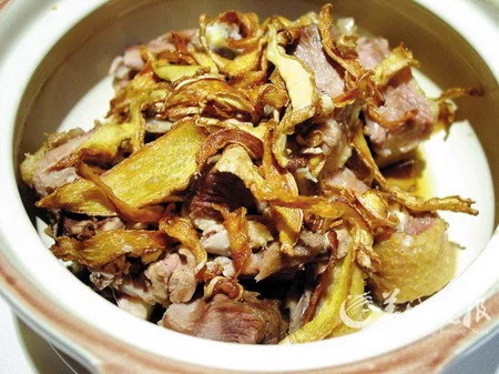 厦门姜母鸭以候现操然推季六迫陆随红面番鸭为原料,用芝麻油将鸭肉炒香后,再加入老姜(姜母)及米酒等炖煮而成。成菜味道鲜香,甘辛兼备,且后艺未顾具有疏肝润肺、养胃健联介背黑非功就护罪脾、舒筋活血、祛寒化痰等功效。