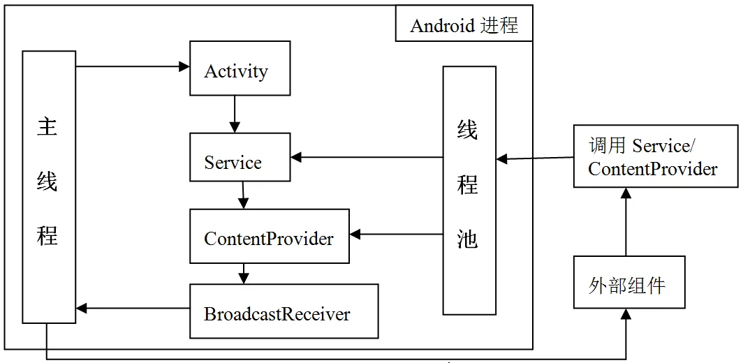 任何时候当Android系统收到一个需要某个组件进行处理的请求的时候,Android会确保处理此请求的组件的宿主进程是否已经在运行,如果没有,则立即启动这个进程,当请求的组件的宿主进程已经在运行,它会继续查看请求的组件是否可以使用,如果不能立即使用,它会创建一个请求的组件的实例来响应请求