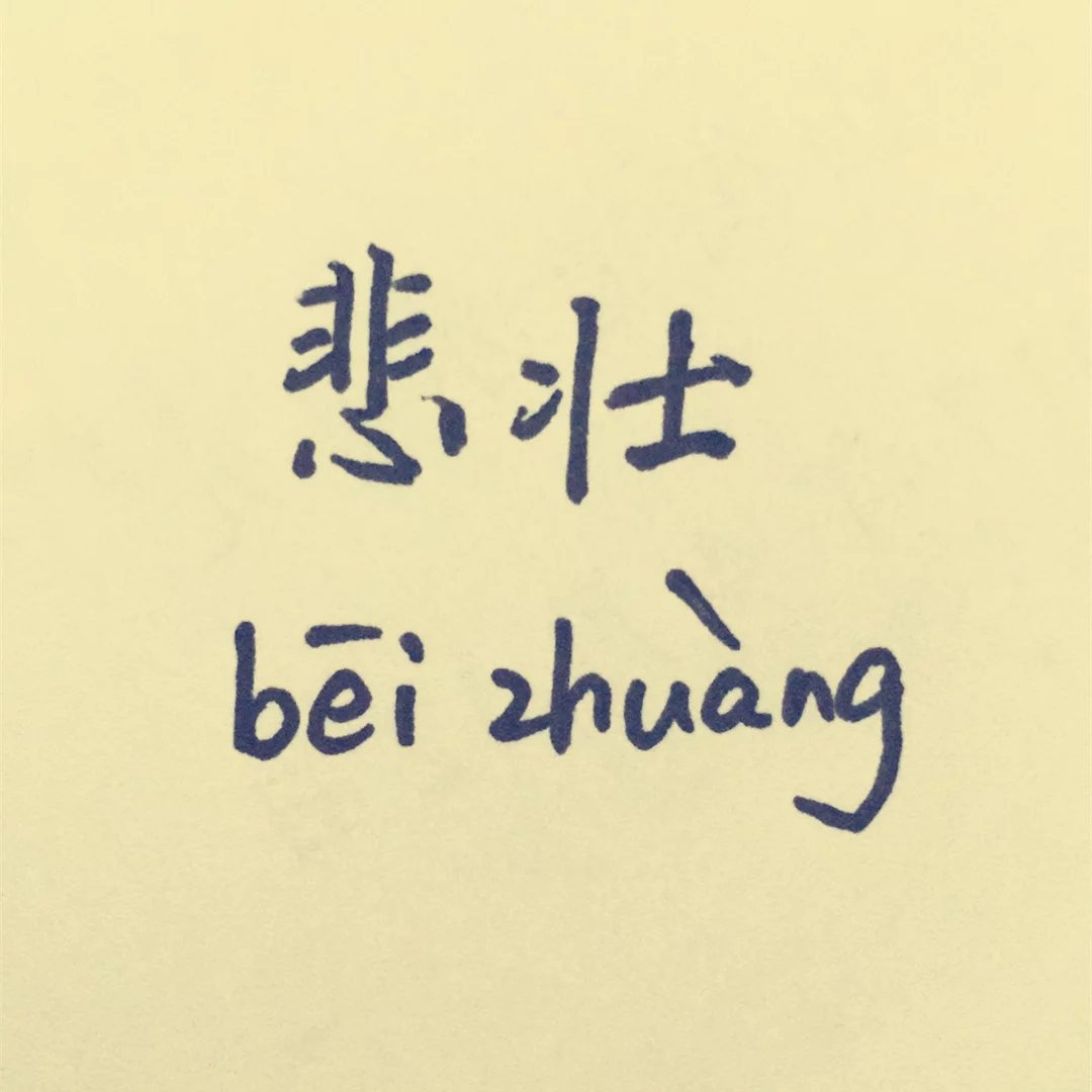 悲壮,汉语词汇,拼音:bēi zhuàng,释义:指悲哀雄壮,或形容悲痛而壮烈的样子。