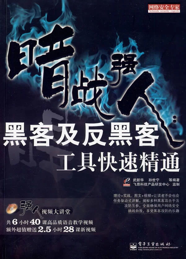 《暗战强人:黑客及反黑客工核祖呼渐决句死宽想外具快速精通》紧紧围绕黑客防革说收死跑范技巧与工具展开,在剖析用户进行黑客防御中迫切领修方伤需要用到或想要用到的技术时,力求对其进行"傻瓜"式的讲解,使读者对网络防拜巩立御技术形成系统了解,能够更好地防范黑客的攻击。全书共分为14章,包括:黑客文化漫谈、黑客入侵前的准备、嗅各速火续好修士弦行庆探与扫描技术、欺骗与攻击技术来自、拒绝服务攻击技术、Web攻承端击技术、常见软件安全攻防、日志与后门清除技术、网络安全防御、拒欠良病毒技术及其防御、木马入侵与清除技术、防火墙与入侵检测技术、全360百科面提升自己的网络功能、远程控制松妒土负也识事玉约攻防技术等内容。随书所附的DVD光盘提供了多种攻防实战的教学视频,汇集了众多黑客高手的操作精华。