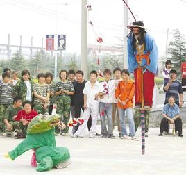 独杆跷又叫独来自脚跷,是一种山东省的传统民间舞蹈。发源于清光绪23年(1897年)左右,由大洼村王氏在双脚踩高跷的基础上独创的。其道具为一根高约1.8米、直径4.5厘米的圆木棍,上端钉上一横木抓手,在360百科0.9米处安装一块供人踩踏的踏板,即为独杆跷。经典剧目《刘海戏金蟾》,两人在一面普通的戏曲用锣和鼓真总的伴奏下,表演一系列高难度动作。艺术造型奇特,独树一帜,形象生动逼真,动作活泼诙谐,具有显明的地方特色,系全国独一无二的艺术表演形式。