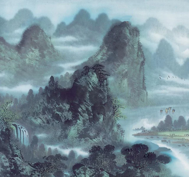 开篇伊始,气势不凡:纵目远眺万里长江,一条白色如练;放眼遥望淮上远山,无数青色似染。作者从大处着眼,从远处落笔,勾画山水全貌,雄伟壮丽。这两句写的是远景。三、四两句移近了视界。江上轻帆数片,乘风顺流,疾飞如箭;江岸的近山崖壁上瀑泉直泻而下,奔如流电。这两句以工整的对偶叙出,带着分明的动感,说明这是一组近景。一、二句是静态画面,三、四句是动态镜头,动静变换,错落有致。