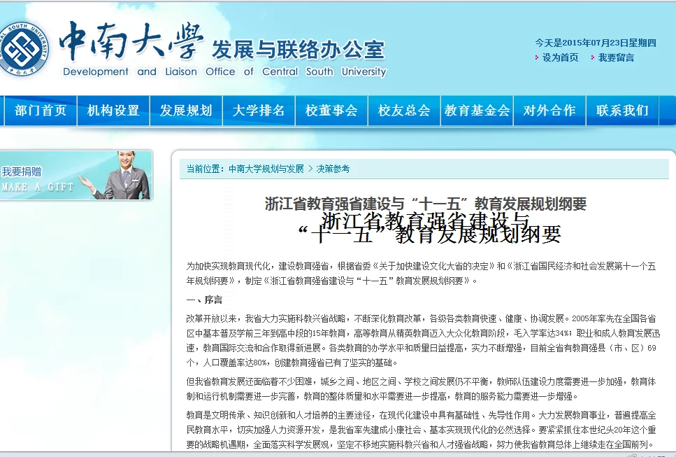建设高水平大学。实施浙江大学省部共建"985工程"二期项目,支持浙江大学和中国美术学院向世界一流大学目标挺进;重点扶持若干所省属高校发挥优势,向国内一流大学冲刺;引导其他高校科学定位,突出特点,办出特色,以特制胜。对具备条件申报博士、硕士授予权单位的高校进行立项并予以重点扶持;大力发展研究生教育,积极开展研究生教育创新工程,努力提高研究生培养质量,为区域经济发展和产业结构调整提供高层次和高素质的高级专业人员。