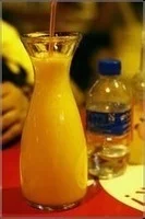 由新鲜的芒果经由机器加工榨出的汁液。颜色鲜黄,味甜,有安神,助睡眠功效。