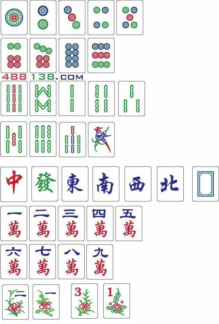 麻将一副牌共108张,筒、条、万各36张, 4人同时玩。