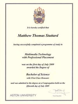 - 外文名称 Honours Degree