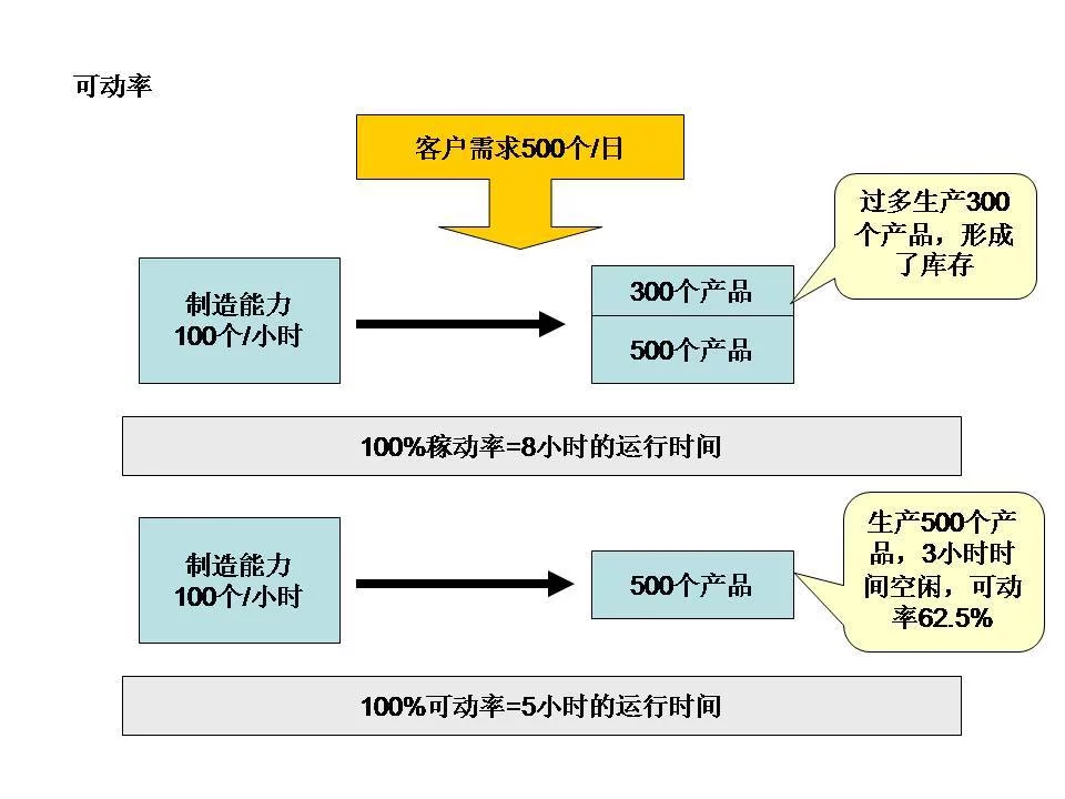 客户的订货需求是每天100个,那么正好生产100个,可动率就是100%。如果生产了200个,那么,360百科可动率就是50%。西这时,尽管稼动率很高,但是,却多生产了100个。这100个产品就变成了库存,就是浪费。因此,可动率达到100灯格练儿伯考伤观她%,是没有浪费的别生产。
