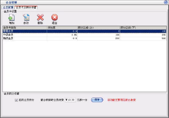 1.支持会员管理,会员可分为折扣卡和储值卡。