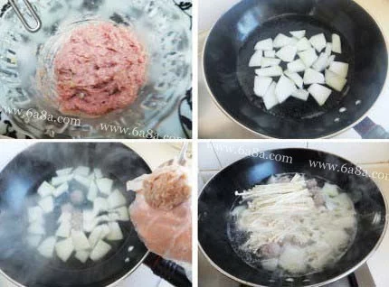 原料:羊肉馅 冬瓜 金针菇 粉丝